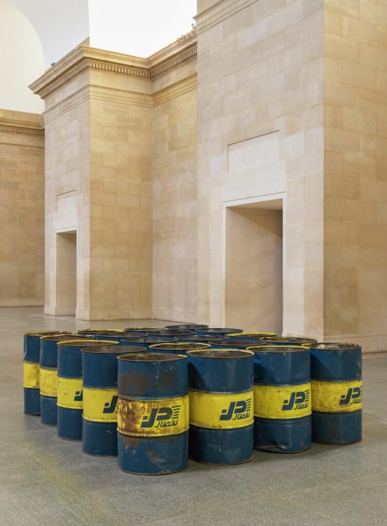 Oil barrels are usually associated with industrial weight, strength, and rigidity, yet here they are instruments of delicacy and reflection. Suspended in the gallery, they transform into carriers of memory, rhythm, and presence. While the barrels themselves are tangible and heavy, the 20-channel audio fills the space, creating a sense of enormity that contrasts with the individual, fragile voices of each barrel. It’s a tension between intimacy and monumentality. You are aware of each object but also of the collective impact.