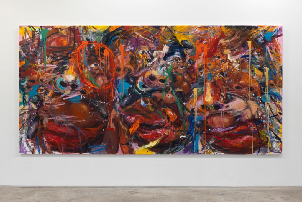 The materiality and color are crucial to the experience. Reds and oranges pulse with energy and rage; blues and greens offer moments of calm, tenderness, and reflection. The scale of the paintings amplifies this impact. Almost life-sized large canvases confront the viewer into the emotional world of the artist. The paintings look as if they are born out of his bodily engagement. His brushstrokes are gestures, almost dances across the canvas, marking moments of anger, joy, and memory. This makes the work feel alive and intimate. The act of painting itself becomes a performance of emotion and self-reflection.
